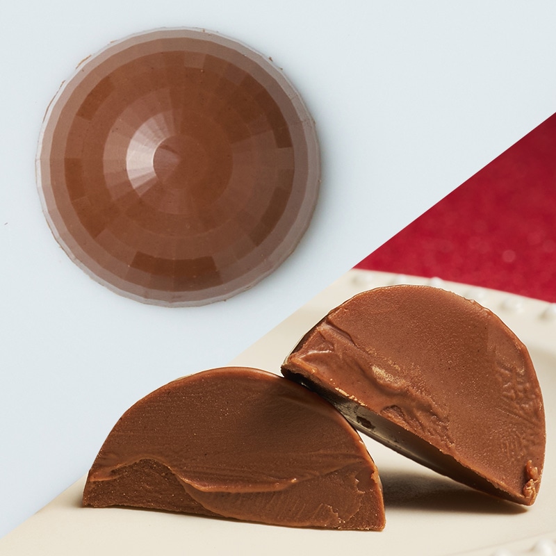 カカオ豆を自家焙煎して作り上げたチョコレート。エレガントな流線で大人な華やかさを演出します。