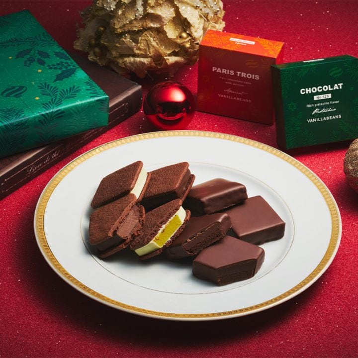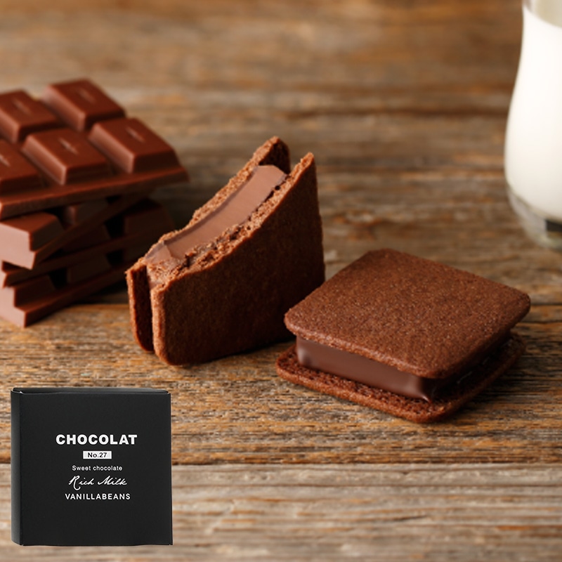 サクッ、パリッ、とろ~り。とろける生チョコレートをこだわりのクーベルチュールでコーティングし、サクサクのバタークッキーでサンドした、バニラビーンズオリジナルの生チョコクッキーサンド「ショーコラ」。一度口にしたら虜になる当店のロングセラー商品です。豊かなバターの風味とフェアトレードチョコレートを使用した"生チョコレート"の濃厚な甘さが口いっぱいに広がる味わいは、特別な日のお楽しみや、大切な人への贈り物としてもおすすめです。