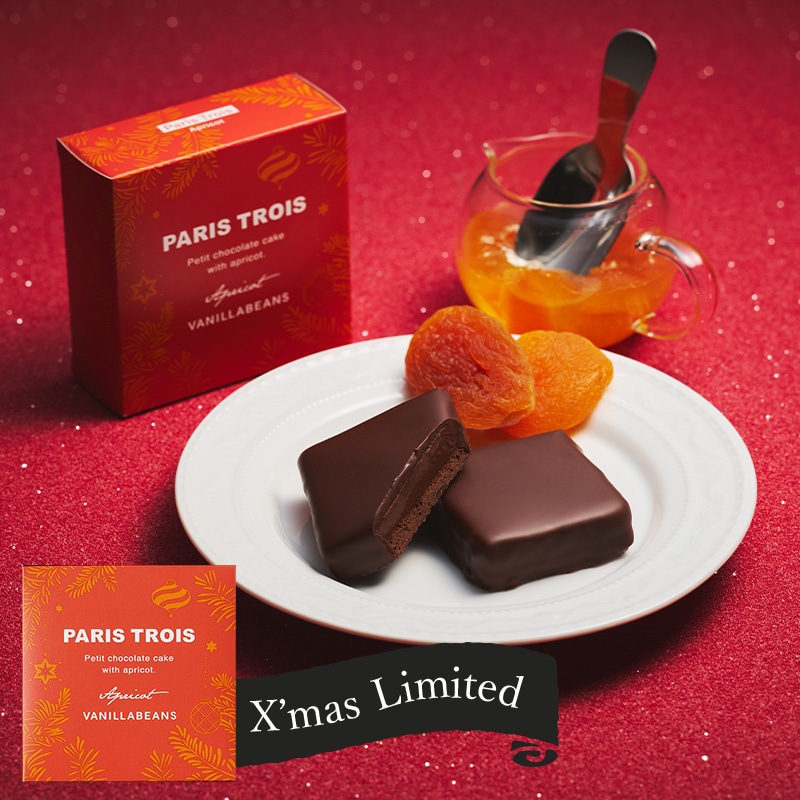 甘さと香りのバランスがいいカカオ55%のチョコレートを使用。さらに洋酒で香り付けしたパリトロの定番かつ王道フレーバー。3層からなる濃厚プチショコラケーキをお楽しみください。