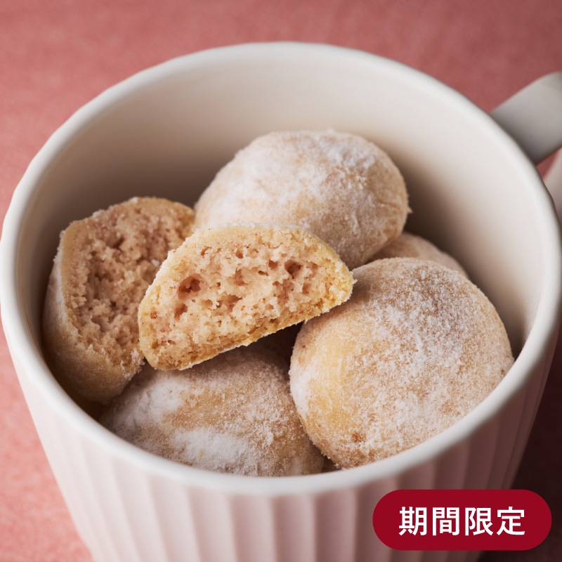 今までにない口どけ食感のスノーボールに、期間限定でストロベリーが登場。見た目も断面も可愛らしい色合いと優しい甘酸っぱさをお楽しみください。