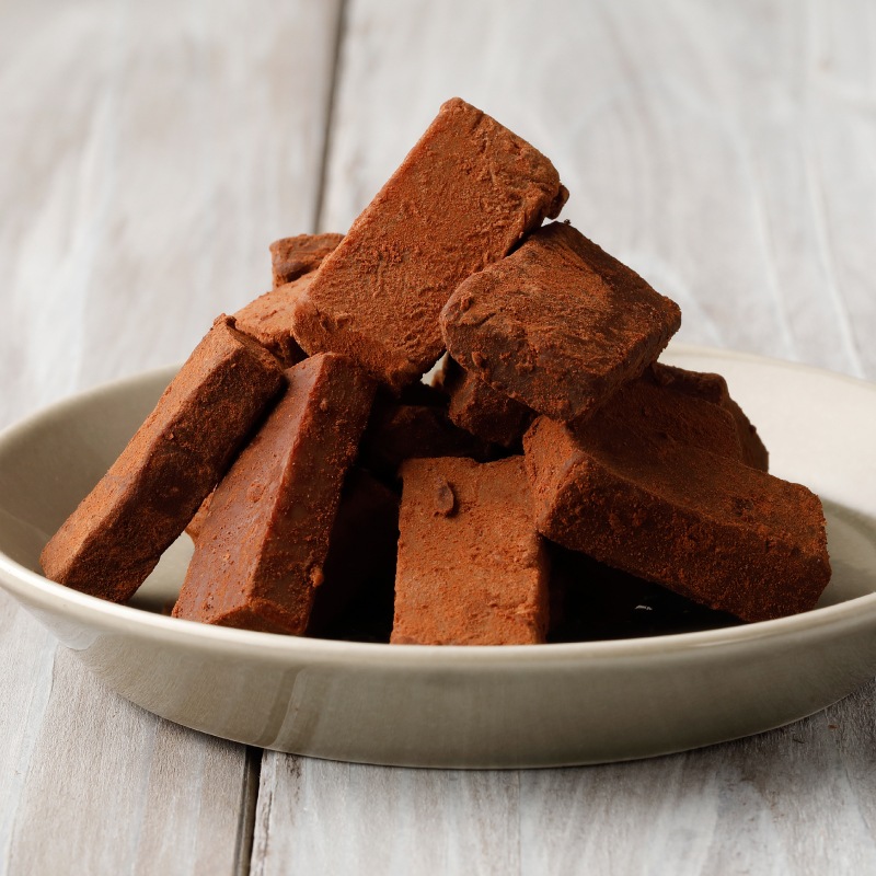 ショーコラの真ん中、一番美味しい部分「ガナッシュ」を作るときにどうしても出てしまう「切れはし」。なめらかな口どけはそのままに、贅沢な生チョコレートにしました。