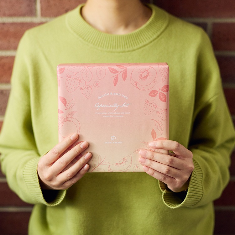 受け取った方も思わず笑みが溢れるようなパッケージとエスペシャリーセット限定の華やかな包装紙でお届けいたします。