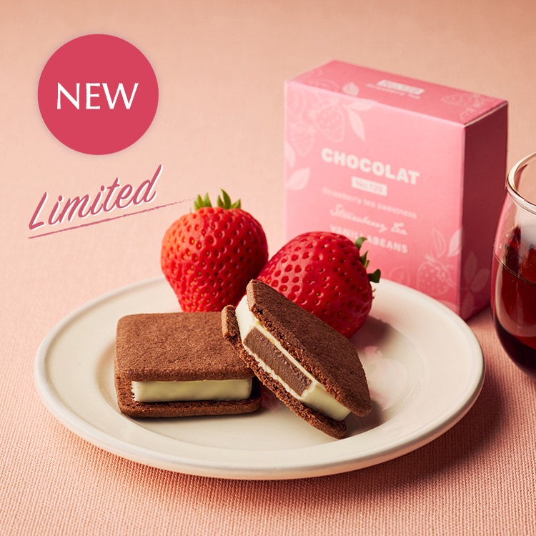 紅茶の上品な香りに、いちごの華やかな甘酸っぱさを感じられるフレーバー。ココアクッキーと一緒に召し上がることで、ほどよい大人な甘さをお楽しみいただけます。