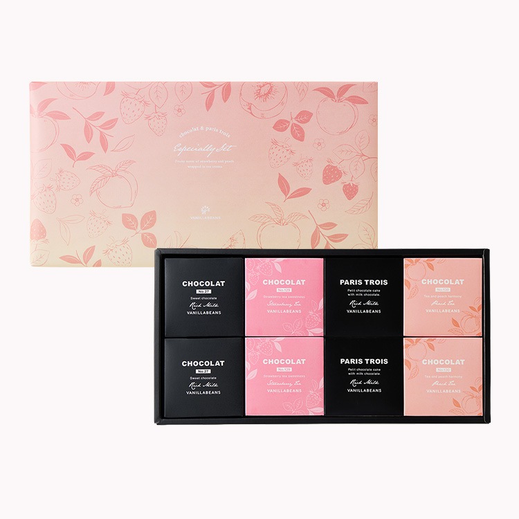 毎年好評いただいている「エスペシャリーセット」がリニューアルして今年も登場!穏やかな気候に食べたくなる、優しいフレーバーを詰め合わせました♪ショーコラからは、人気限定フレーバー「リッチミルク」をはじめ、限定フレーバー「ストロベリーティー」と「ピーチティー」が初登場!パリトロからは「リッチミルク」がギフト初登場です。香りや見た目が華やかで、心に癒しを与えてくれます♪