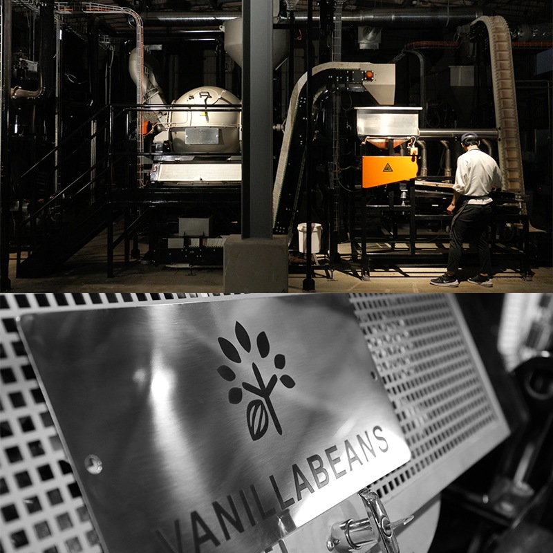 チョコレートは作り手が違うだけで風味や香りが変わる繊細なもの。バニラビーンズの焙煎所「バニラビーンズ ザ ロースタリー」では、日本初上陸の特別なロースターで焙煎。選別からメランジング、成形までの全ての工程をこのロースタリーで行い、こだわり抜いたチョコレートを日々作り続けています。