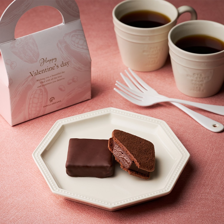 サクッ、パリッ、とろ~り。とろける生チョコレートをこだわりのクーベルチュールでコーティングし、サクサクのバタークッキーでサンドした、バニラビーンズオリジナルの生チョコクッキーサンド「ショーコラ」。一度口にしたら虜になる当店のロングセラー商品です。豊かなバターの風味とフェアトレードチョコレートを使用した"生チョコレート"の濃厚な甘さが口いっぱいに広がる味わいは、特別な日のお楽しみや、大切な人への贈り物としてもおすすめです。