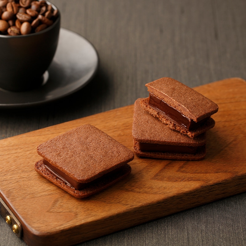 コーヒーの豊かな香りとチョコレートの濃厚な味わいが溶け合い、舌の上で広がる贅沢なひとときを演出。余韻も楽しめる深い味わいです。