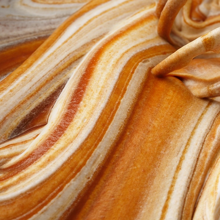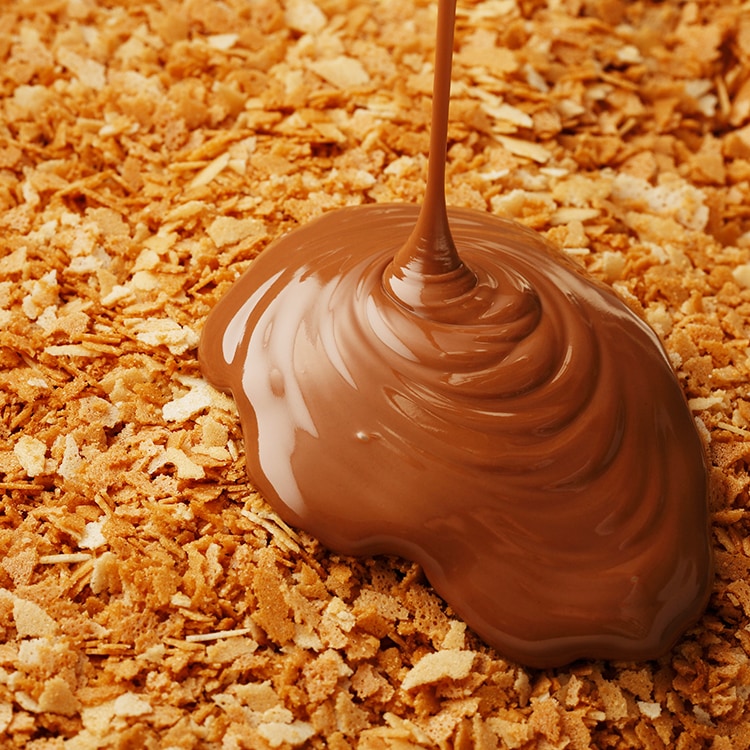 サクサクのフィアンティーヌにプラリネペーストをミックス。さらにミルクチョコレートをかけて、香ばしい香りの中に優しい甘さをプラス。 |