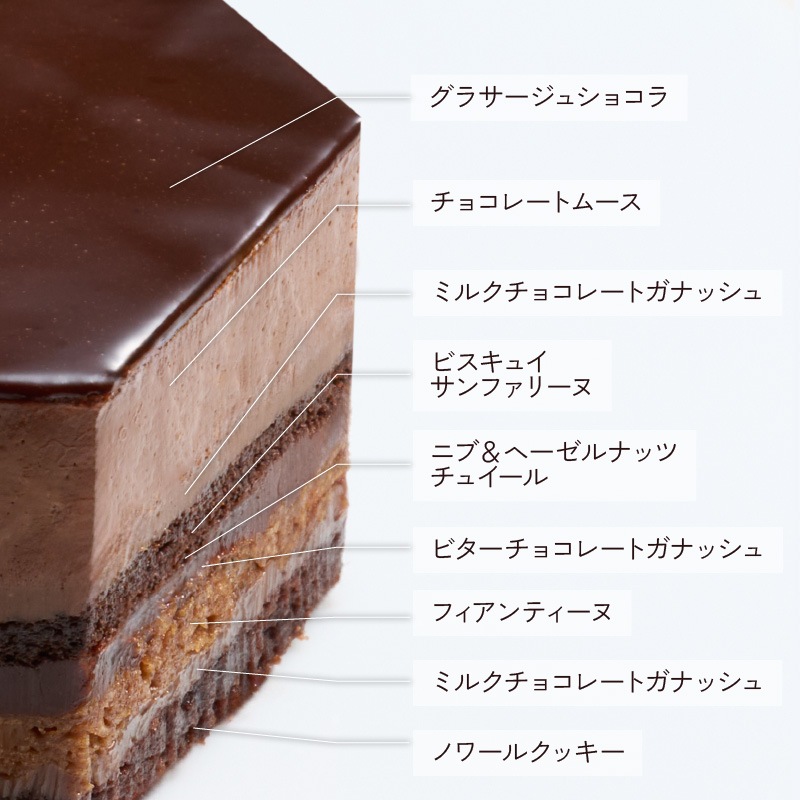 大人気の濃厚チョコレートケーキを少人数でも贅沢に楽しめるように、小さくても満足感たっぷりの新サイズが登場。Bean to Bar チョコレートを使用し、食感の異なる9層でカカオの味わいと深い魅力を表現しました。1層1層こだわり抜いた 風味豊かな香りとともにお楽しみください。