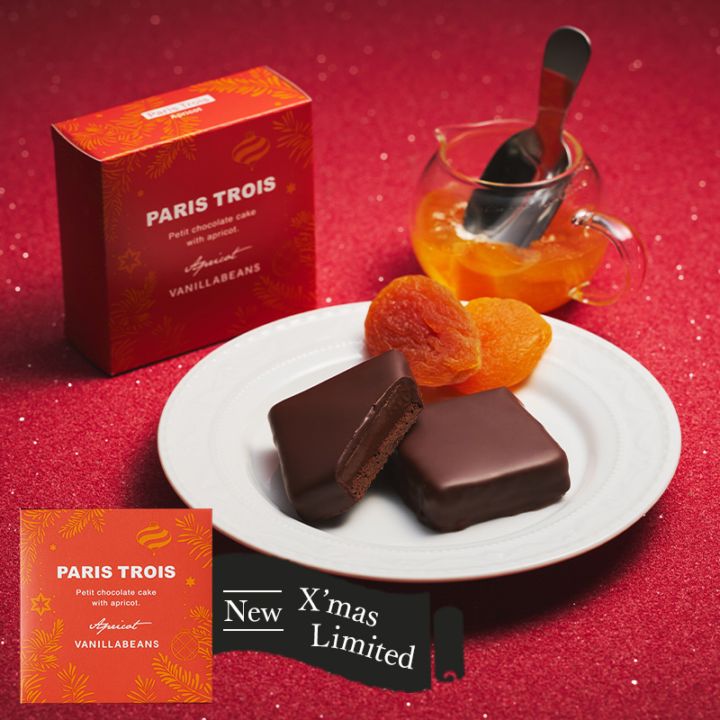 濃厚なクラシックショコラにとろりとした口どけのガナッシュの二層をクーベルチュールで薄く包み込んだ、贅沢なプチショコラケーキ。 芳醇なチョコレートとアプリコット特有の甘みや酸味が合わさる味わい深いフレーバー。濃厚なチョコレートの程よい甘みの中に優しく感じるアプリコットのフルーティーさが大人な味わいです。
