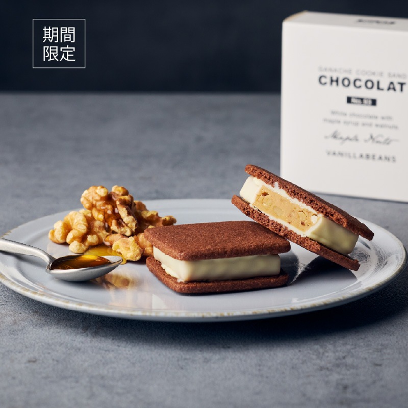 サクッ、パリッ、とろ~り。とろける生チョコレートをこだわりのクーベルチュールでコーティングし、サクサクのバタークッキーでサンドした、バニラビーンズオリジナルの生チョコクッキーサンド「ショーコラ」。一度口にしたら虜になる当店のロングセラー商品です。豊かなバターの風味とフェアトレードチョコレートを使用した"生チョコレート"の濃厚な甘さが口いっぱいに広がる味わいは、特別な日のお楽しみや、大切な人への贈り物としてもおすすめです。