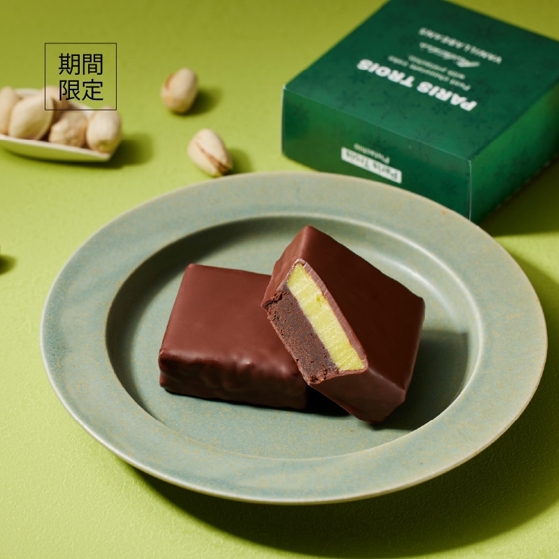 幾度となく試行錯誤を繰り返し、ようやく完成した自信作。ピスタチオペーストをたっぷりとホワイトチョコレートに混ぜ合わせた色鮮やかなパリトロです。クラッシュしたピスタチオの食感がアクセント。